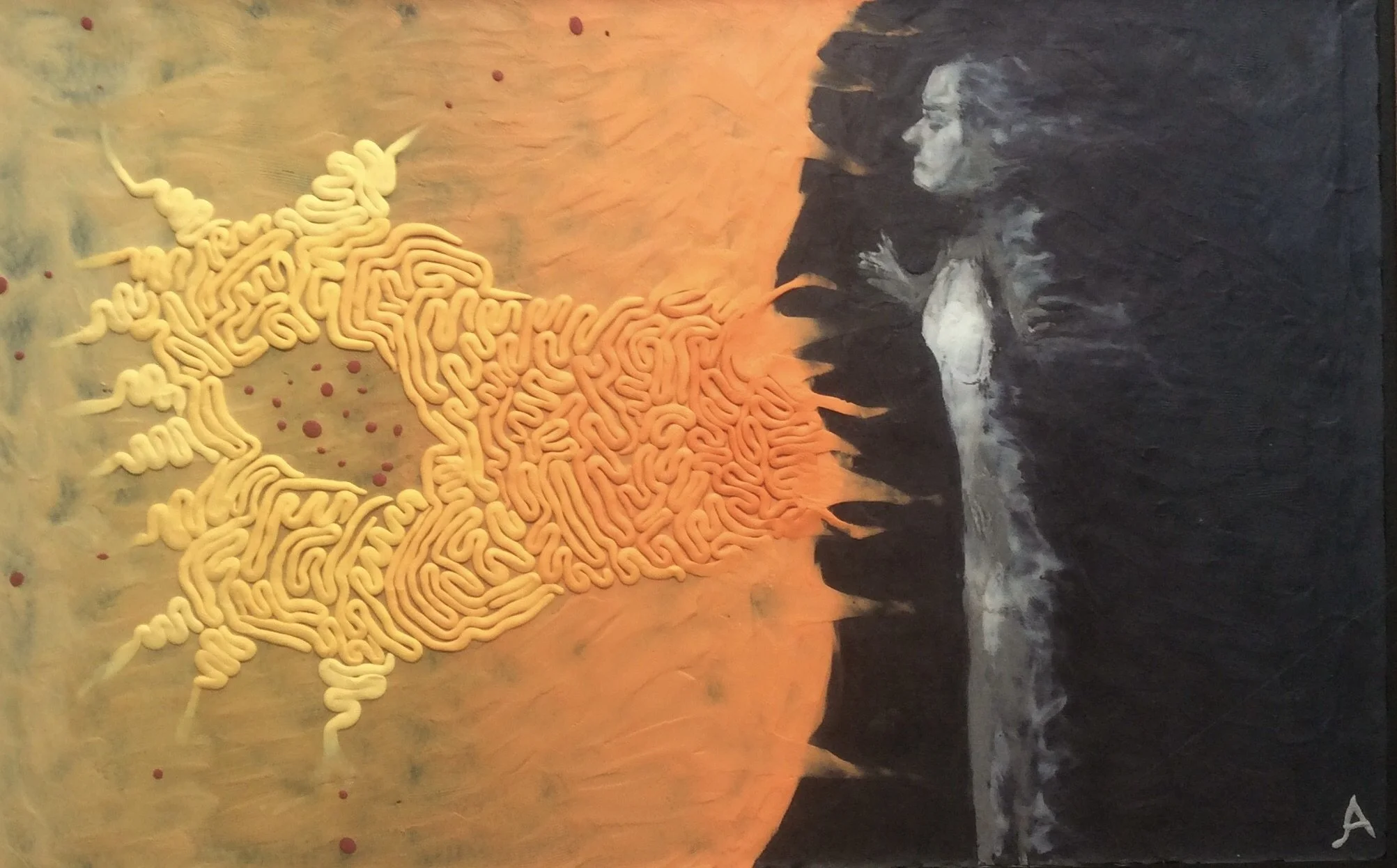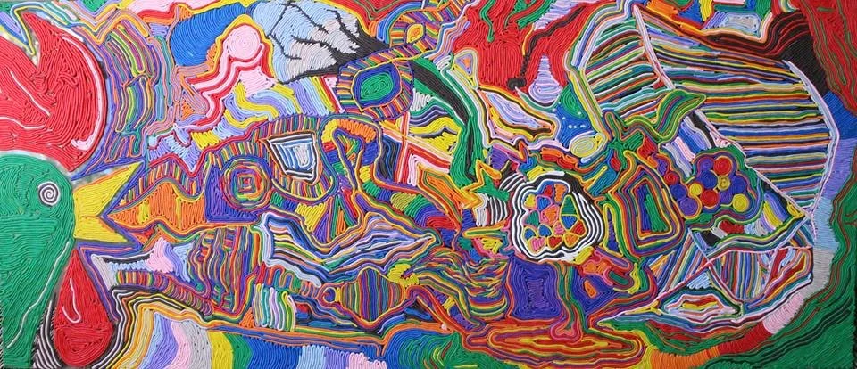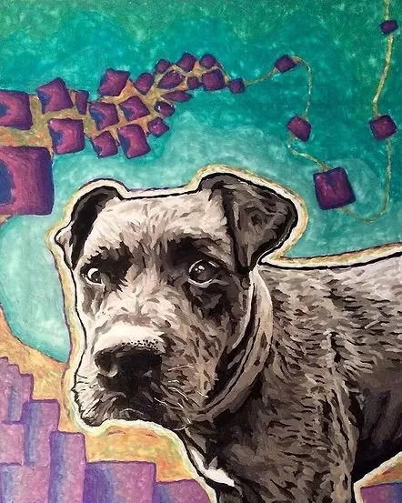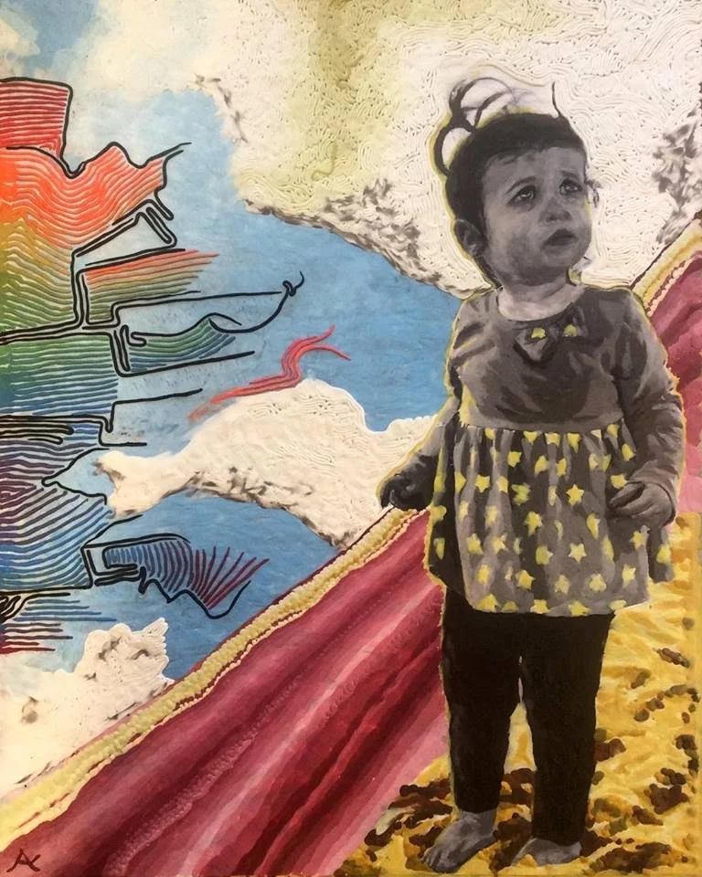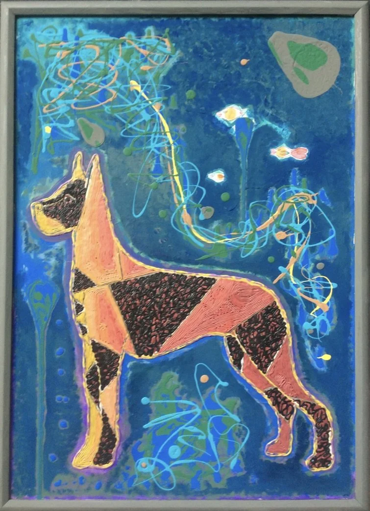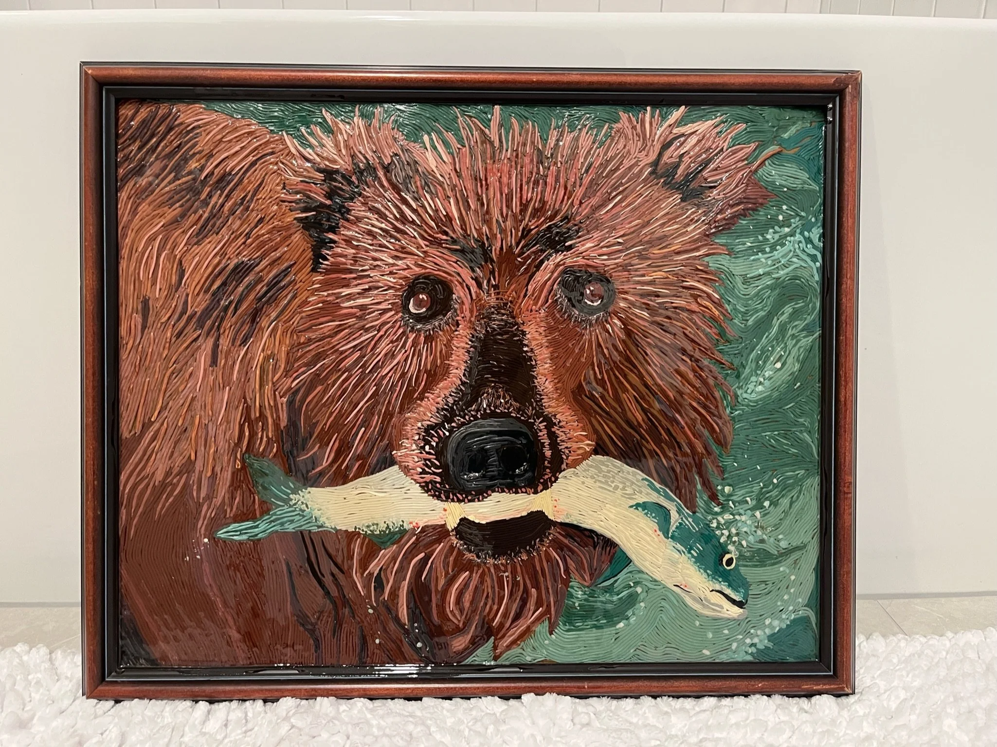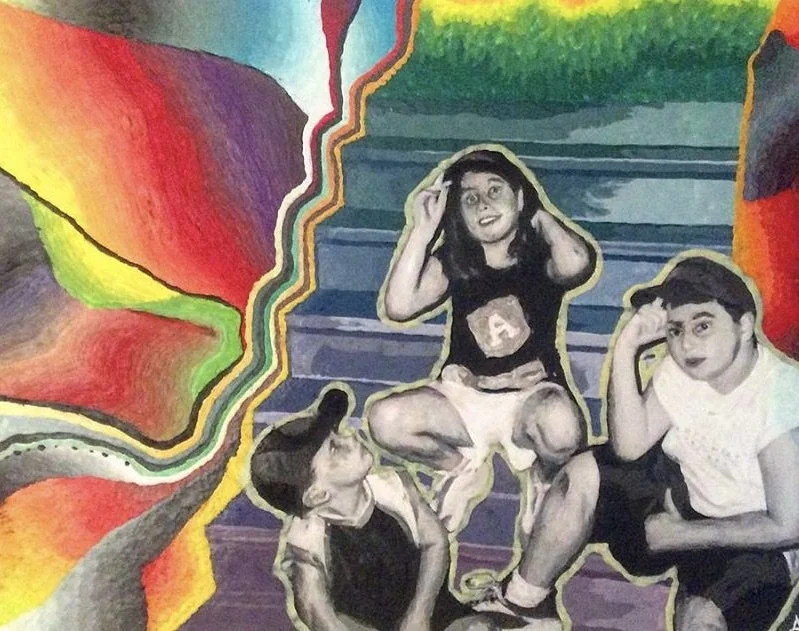 Family Portrait. Found Objects. Collage. Paint. Epoxy Resin. (This piece was made by using sentimental objects collected by the customer.)